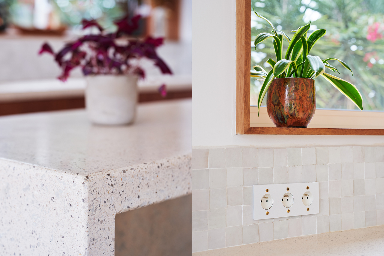 L’artisanat était également un aspect essentiel du projet pour nos clients. Zellige, bejmat, béton ciré, enduit à la chaux, béton poncé. Toutes ces matières, importantes dans la définition des différents espaces, permettent d’ancrer le projet dans une dimension tellurique et dans une réalité, celle du travail de nos équipes et de la concrétisation de nos idées.