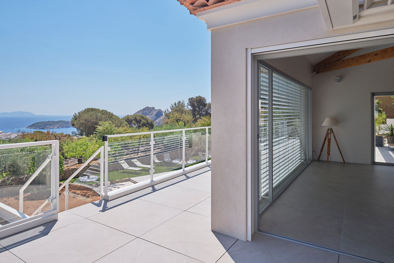 Rénovation complète de cette villa au cœur d’un site naturel d’exception avec sa vue mer à couper le souffle. Pins, cyprès, olivier : tout le charme de la méditerranée parfaitement résumé.